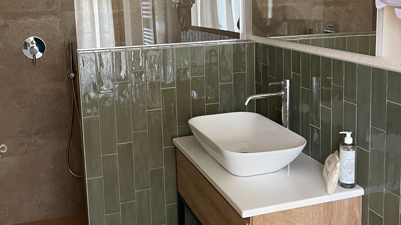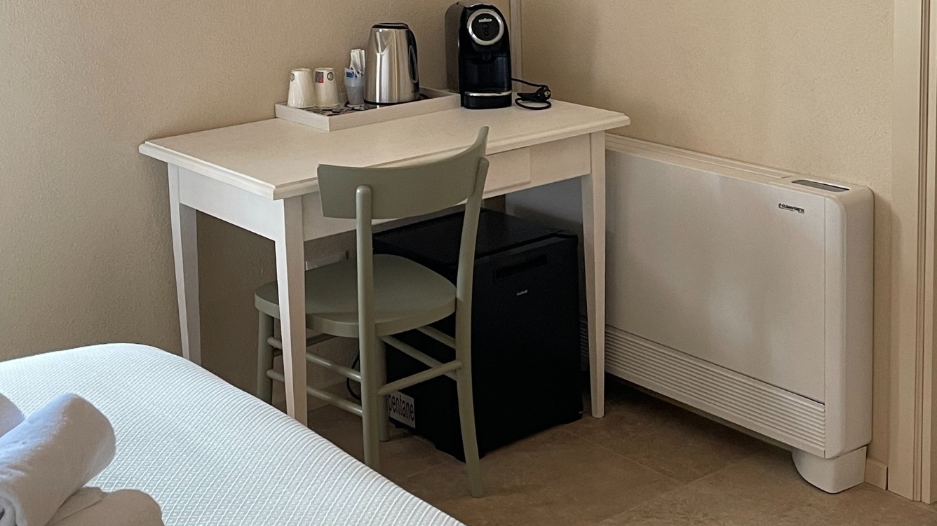 La camera Grecale è situata al primo piano della struttura è composta da un ampio letto matrimoniale dotata di TV a schermo piatto, un bollitore, macchinetta del caffè compresa di cialde e un bagno privato con a disposizione un Phon, shampoo doccia e sapone mani; dispone di impianto di climatizzazione/riscaldamento.